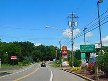 New York State Route 367 (NY 367) is a state highway located entirely within the village of Wellsburg in Chemung County, New York, in the United States. It is one of the shortest state routes in New York, extending for just 1.07 miles (1.72 km) from the Pennsylvania state line south of the village center to an intersection with NY 427 just north of it. The route serves as the main street of Wellsburg in both function and name. There is no corresponding signed state route on the Pennsylvania side of the border; instead, the road becomes State Route 4013 (SR 4013), one of Pennsylvania's unsigned quadrant routes. NY 367 originally extended north to Lowman when it was assigned as part of the 1930 renumbering of state highways in New York. It was truncated to its current length in 1949.