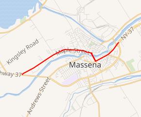Map of the Massena area with NY 37B highlighted in red | ||||
