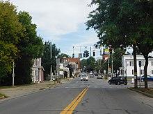 NY 412 begins at an intersection with NY 233 and College Hill Road (unsigned NY 922C) in the town of Kirkland just east of the Hamilton College campus. The route progresses eastward past a short strip of a residences as College Street before crossing over a creek and entering the village of Clinton. It continues to serve residential neighborhoods until it meets Chenango Avenue near the center of the village, at which the surroundings transition from residential to commercial. NY 412 ends one block later at a junction with NY 12B (Franklin Avenue). College Street continues east from this point as part of NY 12B.[4]