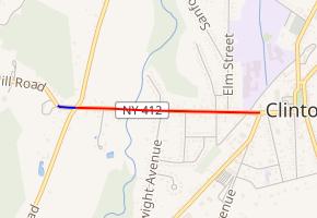 New York State Route 412 (NY 412) is a state highway in Oneida County, New York, in the United States. It serves as a connector between NY 233, which bypasses the village of Clinton to the west, and NY 12B, which passes through the village. NY 412 is a two-lane highway its entire length. It was assigned in the mid-1930s, originally extending from the Hamilton College campus west of NY 233 to Clinton. It was cut back to its present length in the early 1950s.