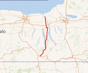 New York State Route 414 (NY 414) is a north–south state highway in the Southern Tier and Finger Lakes regions of New York in the United States. It extends for 83.20 miles (133.90 km) from an intersection with NY 352 in the Steuben County city of Corning to a junction with NY 104 in the Wayne County town of Huron. NY 414 spans five counties and roughly parallels NY 14 between Watkins Glen and Huron. It intersects every major east–west arterial in western New York, including the Southern Tier Expressway (Interstate 86 (I-86) and NY 17), U.S. Route 20 (US 20) and NY 5, and the New York State Thruway (I-90). The route passes through mostly rural areas as it travels between the several villages and cities along its routing.
