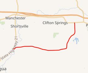 New York State Route 488 (NY 488) is a state highway in Ontario County, New York, in the United States. It extends for 9.53 miles (15.34 km) from an intersection with NY 21 in the town of Hopewell, near the city of Canandaigua, to a junction with NY 96 midway between the villages of Phelps and Clifton Springs. NY 488 also passes through the hamlet of Orleans, located within the town of Phelps. Although NY 488 is signed as a north–south highway, most of the route follows an east–west alignment. NY 488 was originally designated as part of NY 88 in the 1930 renumbering of state highways in New York. NY 88 was truncated to the village of Phelps in August 1972, at which time its former routing between NY 21 and NY 96 was renumbered to NY 488, eliminating an overlap with NY 96.