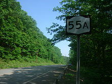 New York State Route 55A (NY 55A) is a state highway located in Sullivan and Ulster counties. It is a loop route connected to NY 55 at both ends, near Grahamsville in the west and Napanoch in the east. Inside the loop is New York City's Rondout Reservoir.