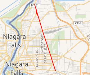 Map of the Buffalo–Niagara Falls area with NY 61 highlighted in red | ||||