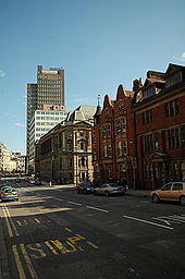 Newhall Street stretches from Colmore Row in the city centre by St Phillip's Cathedral in a north-westerly direction towards the Jewellery Quarter. Originally the road was the driveway to New Hall occupied by the Colmore family. New Hall was demolished in 1787 after being vacated by the Colmores and used as a warehouse by Matthew Boulton. Newhall Street was so named in 1766, after opening as a public street in 1746 called Newport Street and then New Hall Walk.[1] The streets on the estate were named after the children of the family.