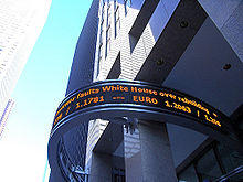 Ticker displays appear today on the exterior of the Fox News/News Corporation headquarters in the west extension of Manhattan's Rockefeller Center, as well as one that displays delayed stock market data that is located in Times Square. NASDAQ itself features a large display screen on the facade of the NASDAQ MarketSite building in Times Square.