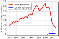 - ^ Suzanne Vranica and Jack Marshall, "Plummeting Newspaper Ad Revenue Sparks New Wave of Changes: With global newspaper print advertising on pace for worst decline since recession, publishers cut costs and restructure" Wall Street Journal Oct 20, 2016