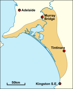 According to David Horton's map "Aboriginal Australia", the Ngarrindjeri lands lie along the Coorong coastline, from Victor Harbor on the southern Fleurieu Peninsula in the north, to Cape Jaffa in the south.[15] According to the map, the lands extend inland just north of Murray Bridge, receding to a 15-to-20 km (9.3-to-12.4 mi) wide coastal strip west of the Murray River lower lakes, but extending further inland in the south to a point near the state border at Coonawarra. The lands include both of the Murray lower lakes, Lake Alexandrina and Lake Albert.