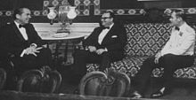 After the U.S. Marines withdrew from Nicaragua in January 1933, Sandino and the newly elected administration of President Juan Bautista Sacasa reached an agreement by which Sandino would cease his guerrilla activities in return for amnesty, a grant of land for an agricultural colony, and retention of an armed band of 100 men for a year.[57] However, due to a growing hostility between Sandino and National Guard director Anastasio Somoza García and a fear of armed opposition from Sandino, Somoza García decided to order his assassination.[56][58][59] Sandino was invited by Sacasa to have dinner and sign a peace treaty at the Presidential House in Managua on the night of February 21, 1934. After leaving the Presidential House, Sandino's car was stopped by soldiers of the National Guard and they kidnapped him. Later that night, Sandino was assassinated by soldiers of the National Guard. Hundreds of men, women, and children from Sandino's agricultural colony were executed later.[60]
