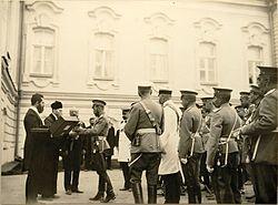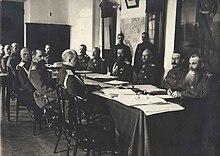 The Kishinev newspaper Bessarabets, which published anti-Semitic materials, received funds from Viacheslav Plehve, Minister of the Interior.[64] These publications served to fuel the Kishinev pogrom (rioting). The government of Nicholas II formally condemned the rioting and dismissed the regional governor, with the perpetrators arrested and punished by the court.[65] Leadership of the Russian Orthodox Church also condemned anti-Semitic pogroms. Appeals to the faithful condemning the pogroms were read publicly in all churches of Russia.[66] In private Nicholas expressed his admiration for the mobs, viewing anti-Semitism as a useful tool for unifying the people behind the government;[67] however in 1911, following the assassination of Pyotr Stolypin by the Jewish revolutionary Dmitry Bogrov, he approved of government efforts to prevent anti-Semitic pogroms.[68]