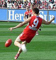 Nick Malceski (born 15 August 1984) is a former professional Australian rules footballer who played for the Sydney Swans and Gold Coast Football Club in the Australian Football League (AFL). A running defender, he was part of the Sydney line-up that won the 2012 AFL Grand Final, and in total played 176 games for the club between 2005 and 2014.[1] He was named in the 2014 All-Australian team, but at the end of that season joined the Gold Coast, where he played two seasons (consisting of 34 games) before retiring at the end of the 2016 season.