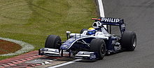 The 2008 season was the first in which Rosberg was the more experienced driver on his team, being partnered by Williams test driver Kazuki Nakajima.[69] He stated his confidence the Williams team would finish fifth or higher in the Constructors' Championship and had improved his technical skills.[72] Rosberg began the season with a third-place finish at the Australian Grand Prix, the first podium finish of his career.[44] Afterwards, his campaign faltered because the FW30 car lacked outright performance and Williams did not develop the car fast enough for it to be competitive.[73] Rosberg was occasionally outperformed by his teammate Nakajima, and driver errors lost him chances to score more points;[74] he was able to adapt to a ban on traction control from Formula One.[75] He improved the best result of his career with a second at the inaugural Singapore Grand Prix 14 races later, and finished 13th in the Drivers' Championship with 17 points.[31]