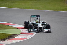 Rosberg remained with Mercedes for 2011 and was again joined by Michael Schumacher.[86] He stated that his objective for the season was to claim his first career victory and knew it would not be straightforward due to other teams' advantages.[89] Rosberg had a mixed season: he led the Chinese Grand Prix and the Belgian Grand Prix, but the MGP W02 wore the Pirelli tyres quickly, making the car noncompetitive.[31] He was able to maintain a consistent performance in every qualifying session and began higher than his teammate Schumacher sixteen times to three.[90] Rosberg finished no higher than fifth in the season's 19 rounds and was seventh in the Drivers' Championship with 89 points.[31]