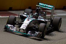 Three-time world champion Niki Lauda began to advise Rosberg.[95] At the Chinese Grand Prix, the season's third round, he took the first pole position of his career and his maiden career victory.[9] He then challenged Red Bull Racing driver Mark Webber for the victory at the Monaco Grand Prix three races later before he settled for a second-place finish.[96] Rosberg had accumulated more championship points than any other driver in the season's previous four races and emerged as an unlikely contender for the Drivers' Championship.[97] Notwithstanding this, he achieved one further top-five finish during the season.[31] However, he struggled to generate temperature into the rear tires on the Mercedes F1 W03 regardless of the climatic conditions, and the car was suited to circuits with slow-speed corners.[98] He was ninth in the Drivers' Championship with 93 points.[31]