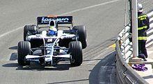 The 2003 season saw Rosberg progress to the higher-tier Formula 3 Euro Series with Team Rosberg. Driving a Dallara F303-Opel car, he won once at the Bugatti Circuit and took five podium finishes for eighth in the Drivers' Championship with 45 points. He was second in the Rookie Cup to Christian Klien.[31] In November 2003, Rosberg was given a test in a Formula 3000 car at the Circuito de Jerez by Paolo Coloni, the team owner of Scuderia Coloni, as preparation for future Formula One testing with Williams.[34][35] That same month, he entered the Macau Grand Prix and the Korea Super Prix with Carlin Motorsport,[36] finishing 11th in Korea.[30] Rosberg tested twice more for Williams in a modified FW25A car at the Circuit de Catalunya in December and January 2004 for them to evaluate his ability as a test driver.[37][38]