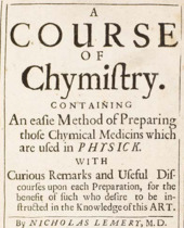 - A course of chymistry : containing an easie method of preparing those chymical medicins which are used in physick ; with curious remarks and useful discourses upon each preparation, for the benefit of such a desire to be instructed in the knowledge of this art. - The 3rd. ed., transl. from the 8th ed. in the French. - London : Kettilby, 1698. Digital edition of the University and State Library Düsseldorf.