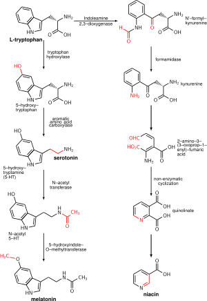 - ^ Fu L, Doreswamy V, Prakash R (August 2014). "The biochemical pathways of central nervous system neural degeneration in niacin deficiency". Neural Regeneration Research. 9 (16): 1509–13. doi:10.4103/1673-5374.139475. PMC 4192966. PMID 25317166.