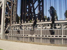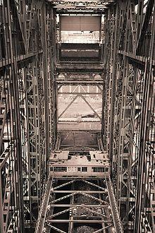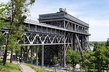 The capacity of the staircase locks was quickly exceeded, therefore, between 1927 and 1934, the boat lift was built and inaugurated on 21 March 1934. The lift is 60 m high, the length 94 m, taking five minutes for the trough to move through the 36m elevation difference. The following enterprises were involved: