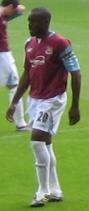 After an impressive first half of the 2003–04 season, he signed for West Ham in January 2004.[10] After the move, Reo-Coker stated that he joined West Ham United, believing the club can bounce back to the Premier League.[11] He made his West Ham debut on 31 January 2004 in a 2–1 home win against Rotherham United.[12] His first West Ham goal came on 9 March 2004 against his former club, Wimbledon as he scored the fifth goal in a 5–0 win.[13] He quickly became a regular member of Alan Pardew's first team and was made the club captain.[14] In his first season West Ham made the 2004 First Division play-off Final but lost 1–0 in Cardiff to Crystal Palace.[15] In his second season, he scored three times and played 39 matches from a possible 46 matches to help the club win promotion to the Premier League in 2004–05 through the play-offs[16] and led the team to the FA Cup Final in May 2006.[17][18]