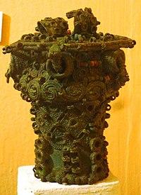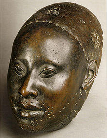 The Nok civilization of Nigeria flourished between 1,500 BC and AD 200. It produced life-sized terracotta figures that are some of the earliest known sculptures in Sub-Saharan Africa[38][39][40][41][42] and smelted iron by about 550 BC and possibly a few centuries earlier.[43][44][45] Evidence of iron smelting has also been excavated at sites in the Nsukka region of southeast Nigeria: dating to 2000 BC at the site of Lejja (Uzomaka 2009)[46] and to 750 BC and at the site of Opi. The Kingdom of Nri of the Igbo people consolidated in the 10th century and continued until it lost its sovereignty to the British in 1911.[47][48] Nri was ruled by the Eze Nri, and the city of Nri is considered to be the foundation of Igbo culture. Nri and Aguleri, where the Igbo creation myth originates, are in the territory of the Umeuri clan. Members of the clan trace their lineages back to the patriarchal king-figure Eri.[49] In West Africa, the oldest bronzes made using the lost-wax process were from Igbo-Ukwu, a city under Nri influence.[47] The Yoruba kingdoms of Ife and Oyo in southwestern Nigeria became prominent in the 12th[50][51] and 14th[52] centuries, respectively. The oldest signs of human settlement at Ife's current site date back to the 9th century,[50] and its material culture includes terracotta and bronze figures.