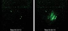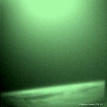 SwissCube-1 is a Swiss satellite operated by Ecole Polytechnique Fédérale de Lausanne. The spacecraft is a single unit CubeSat, which was designed to conduct research into airglow within the Earth's atmosphere and to develop technology for future spacecraft. Though SwissCube-1 is rather small (10 x 10 x 10 cm) and weighs less than 1 kg, it carries a small telescope for obtaining images of the airglow. The first SwissCube-1 image came down on 18 February 2011 and was quite black with some thermal noise on it. The first airglow image came down on 3 March 2011. This image has been converted to the human optical range (green) from its near-infrared measurement. This image provides a measurement of the intensity of the airglow phenomenon in the near-infrared. The range measured is from 500 to 61400 photons, with a resolution of 500 photons.[9]