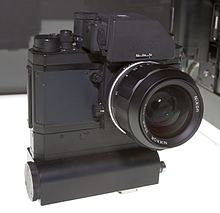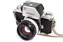 The Nikon F camera, introduced in April 1959,[1] was Nikon's first SLR camera.[2] It was one of the most advanced cameras of its day. Although many of the concepts had already been introduced elsewhere, it was revolutionary in that it was the first to combine them all in one camera.[3] It was produced until October 1973 and was replaced by the Nikon F2. Aspects of its design remain in all of Nikon's subsequent SLR cameras, through the current Nikon F6 film and Nikon D5 digital models (which still share its Nikon F-mount for lenses). The "F" in Nikon F was selected from the term "re-f-lex", since the pronunciation of the first letter "R" is not available in many Asian languages.[4] That tradition was carried all the way through their top line of Nikon cameras until the introduction of the Nikon D1 (digital) cameras decades later.