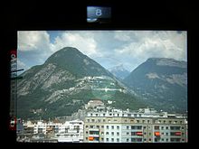 The FE has a "full information" viewfinder very similar to the Nikkormat EL. In addition to the metering shutter scale, the viewfinder also displays the set lens aperture through an optical "eye" (this particular feature missing on the Nikkormat EL) and has a flash "ready" LED to give context to the metering needles. The viewfinder also introduced interchangeable focusing screens to the compact F-series: the standard Nikon Type K screen (3 mm split image rangefinder and 1 mm microprism collar focusing aids plus 12 mm etched circle indicating the area of the meter centerweighting) could be replaced by Type B (central 3 mm focusing spot plus 12 mm etched circle) and Type E (Type B plus a grid of five horizontal and three vertical lines; called the "architectural screen") screens.