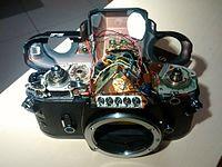 The FG was also Nippon Kogaku’s first amateur level SLR to have through-the-lens TTL off-the-film (OTF) electronic flash automation. However this technology was first introduced with the Olympus OM-2 in 1976.[4] and was also used previously in the Nikon F3 introduced in 1980.[5] TTL OTF flash exposure control is more precise than previous methods as it measures the flash exposure at the film plane rather than at the flash itself. Correct flash exposure is achieved via a SPD cell at the base of the mirror box, which measures light reflected back from the film plane.