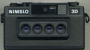 The Nimslo was the first consumer level three-dimensional lenticular camera of the 1980s. There were previous lenticular cameras aimed at amateurs, such as the six-lens Lentic, introduced in 1953, which used 120 roll film,[2] but the Nimslo was probably the first to use 35mm film, and certainly the first that could fit in a pocket.