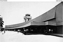 In 1954, the airport's international runway and associated taxiway were built, and in 1956, construction was started on a control tower and a terminal building for international passengers. The new terminal was inaugurated on September 22, 1961.[9] On January 22, 1972, a fire caused substantial damage to the original terminal building, which also resulted in six casualties,[10] and a slightly smaller terminal was rebuilt in its place the following year. This second terminal would served as the country's international terminal until 1981 when it was converted to a domestic airport upon the completion and opening of a new, higher-capacity terminal, known today as Terminal 1.[11] The old international terminal was later damaged by another fire in May 1985.