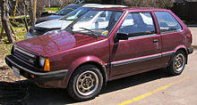 The original Micra (chassis name K10) was introduced onto the Japanese market in October 1982 as a challenger to the Honda City, Daihatsu Charade, Suzuki Cultus, and Toyota Starlet. It was intended to replace the Nissan Cherry as the company's competitor in the supermini sector, as the Cherry model sold in Europe had progressively become larger with each successive generation. In Japan, it was exclusive to Nissan Cherry store locations, as the Japanese market Cherry was renamed March, benefiting from engineering contributions from Nissan's 1966 acquisition of the Prince Motor Company, who originally developed the outgoing Cherry. The Micra had particularly low fuel consumption made possible by a specially developed engine only used in the Micra, an uncommonly high gearing, and a particularly low weight: only 630 kg (1,389 lb) in early European trim.[2] The low weight target necessitated a minimum of insulation, meaning that early Micras were quite loud.[3]