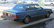 The first car to wear the Maxima name, the second generation Datsun 810, was introduced in 1980 for the 1981 model year. It was essentially a Japanese-market Datsun Bluebird (910) with a 3.9 in (99 mm) longer nose to accommodate the inline-six engine. This model replaced the Datsun 810 (first generation). The second generation Datsun 810 was not sold in Japan, only in North America as the more basic Datsun 810 Deluxe and the fully equipped 810 Maxima.[1] Both were available with either sedan or wagon bodywork.[2] In 1981 for the 1982 model year, all 810s were rebranded as Datsun Maxima. In 1983 for model year 1984, the last year of the first generation Maxima, North American Datsuns began carrying the "Nissan" badge as well. Only 1984 model year Nissans have "Nissan" and "Datsun" badges on the back of the car, although earlier models had a "Datsun" badge with a tiny "by Nissan" section underneath.