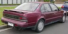 Nissan Australia began importing the J30 series for a May 1990 release to replace the locally assembled Nissan Skyline (R31) sedan and station wagon.[7] Powertrain comprised the 3.0-liter VG30E V6 rated at 122 kW (164 hp) and a four-speed automatic. Nissan made the Maxima available in two equipment grades, the M and Ti.[8] The M featured air conditioning, alloy wheels, central locking, cruise control, power steering, and power windows. The Ti added a rear spoiler, climate control air conditioning, anti-lock brakes, electric seats and a PIN touch-pad locking system. The M-based LE of late 1991 featured a CD player and sunroof.[8] There was also a leather/sunroof pack optional on Ti.[7] Nissan Australia released a facelift in January 1993 that included a new grille insert, revised tail lamps, wheels and cabin trim.[9] A driver airbag was now fitted to the Ti, and made optional on the new Executive trim that replaced the M.[7] The J30 in Australia was replaced in February 1995 by a new Maxima based on the Nissan Cefiro (A32).[7]