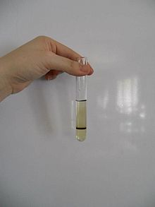 A common nitrate test, known as the brown ring test[2] can be performed by adding iron(II) sulfate to a solution of a nitrate, then slowly adding concentrated sulfuric acid such that the acid forms a layer below the aqueous solution. A brown ring will form at the junction of the two layers, indicating the presence of the nitrate ion.[3] Note that the presence of nitrite ions will interfere with this test.[4]
