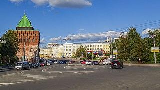 Nizhny Novgorod (Russian: Нижний Новгород, IPA: [ˈnʲiʐnʲɪj ˈnovɡərət]), colloquially shortened to Nizhny, formerly known as Gorky (Горький) (1932–1990), is the administrative centre of Nizhny Novgorod Oblast and the Volga Federal District. The city is located at the confluence of the Oka and the Volga rivers in Central Russia, with a population of over 1.2 million residents,[14] up to roughly 1.7 million residents in the urban agglomeration.[15] Nizhny Novgorod is the sixth-largest city in Russia, the second-most populous city on the Volga, as well as the Volga Federal District. It is an important economic, transportation, scientific, educational and cultural center in Russia and the vast Volga-Vyatka economic region, and is the main center of river tourism in Russia. In the historic part of the city there are many universities, theaters, museums and churches.