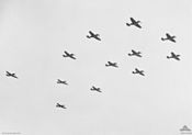 Following the end of the war No. 451 Squadron was deployed to Fassberg and then Wunstorf in Germany as part of the British occupation force. The squadron was deployed to RAF Gatow near Berlin during November and December 1945.[22] While it was intended that No. 451 and No. 453 Squadrons would form a long-term Australian contribution to the occupation of Germany, insufficient RAAF personnel volunteered for this duty to make the deployment viable.[23] As a result, No. 451 Squadron was disbanded at Wunstorf on 21 January 1946. During the war the squadron suffered 28 fatalities, 18 of them Australians.[1]