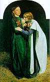 In the sixth reading (עליה, aliyah), Noah became the first to plant a vineyard, and he drank himself drunk, and was uncovered within his tent.[36] Ham, the father of Canaan, saw his father's nakedness and told his two brothers.[37] Shem and Japheth placed a cloth against both their backs and, walking backward, covered their father, without seeing their father's nakedness.[38] When Noah woke up and learned what Ham had done to him, he cursed Ham's son Canaan to become the lowest of slaves to Japheth and Shem, prayed that God enlarge Japheth, and blessed the God of Shem.[39] Noah lived to the age of 950 and then died.[40] The second open portion (פתוחה, petuchah) ends here.[41]