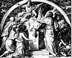 In the fourth reading (עליה, aliyah), God told Noah to come out of the Ark with his family and to free the animals.[25] Then Noah built an altar to God and offered burnt offerings of every clean animal and of every clean bird.[26] God smelled the pleasing odor and vowed never again to doom the earth because of man, as man's imaginings are evil from his youth, but God would preserve the seasons so long as the earth endured.[27] God blessed Noah and his sons to be fertile and increase, and put the fear of them into all the beasts, which God gave into their hands to eat.[28] God prohibited eating flesh with its life-blood in it.[29] God would require a reckoning of every man's and beast's life-blood, and whoever shed the blood of man would have his blood shed by man, for in God's image did God make man.[30] God told them to be fertile and increase.[31] The fourth reading (עליה, aliyah) and a closed portion (סתומה, setumah) end here.[32]