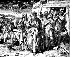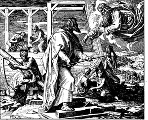 Similarly, a Midrash taught that Noah reproved them, calling them good-for-nothings who forsook the One whose voice breaks cedars, to worship a dry log. But they reacted as in Amos 5:10, which says, "They hate him that reproves in the gate, and they abhor him that speaks uprightly."[95]