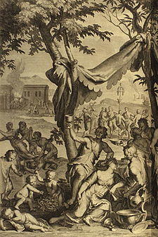 In the continuation of the reading, God told Noah that God had decided to bring a flood to destroy all flesh.[8] God directed Noah to make an ark of gopher wood and cover it with pitch inside and outside.[9] The Ark was to be 300 cubits long, 50 cubits wide, and 30 cubits high. It was to have an opening for daylight near the top, an entrance on its side, and three decks.[10] God told Noah that God would establish a covenant with Noah, and that he, his sons, his wife, his sons' wives, and two of each kind of beast — male and female — would survive in the Ark.[11] Noah did everything that God commanded him to do.[12] The first reading (עליה, aliyah) ends here with the end of chapter 6.[13]