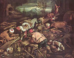 The Tosefta taught that the generation of the Flood acted arrogantly before God on account of the good that God lavished on them. So (in the words of Job 21:14–15) "they said to God: 'Depart from us; for we desire not the knowledge of Your ways. What is the Almighty, that we should serve Him? And what profit should we have, if we pray unto Him?'" They scoffed that they needed God for only a few drops of rain, and they deluded themselves that they had rivers and wells that were more than enough for them, and as Genesis 2:6 reports, "there rose up a mist from the earth." God noted that they took excess pride based upon the goodness that God lavished on them, so God replied that with that same goodness God would punish them. And thus Genesis 6:17 reports, "And I, behold, I do bring the flood of waters upon the earth."[81] Similarly, the Rabbis taught in a Baraita that the good that God lavished upon the generation of the Flood led them to become arrogant.[80]
