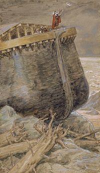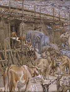 Rabbi Hanan said in the name of Rabbi Samuel ben Isaac that as soon as Noah entered the Ark, God prohibited his family from cohabitation, saying in Genesis 6:18: "you shall come into the Ark, you, and your sons," speaking of them apart, and, "your wife, and your sons' wives," speaking of them apart. When Noah left the Ark, God permitted cohabitation to him again, saying in Genesis 8:16: "Go forth from the Ark, you and your wife," speaking of them together.[100] Similarly, Rabbi Johanan deduced from the same sources that God had forbidden cohabitation for all the Ark's inhabitants. The Rabbis taught in a Baraita that three nonetheless cohabited in the Ark — the dog, the raven, and Ham — and they were all punished.[89]
