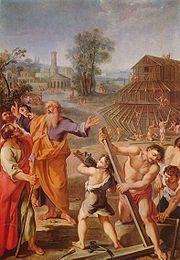 Noting that Genesis 6:9 calls Noah "a man," a Midrash taught that wherever Scripture employs the term "a man," it indicates a righteous man who warned his generation. The Midrash taught that for 120 years (deduced from Genesis 6:3), Noah planted cedars and cut them down. When they would ask him what he was doing, he would reply that God had informed him that God was bringing a flood. Noah's contemporaries replied that if a flood did come, it would come only on Noah's father's house. Rabbi Abba taught that God said that one herald arose for God in the generation of the Flood — Noah. But they despised him and called him a contemptible old man.[94]