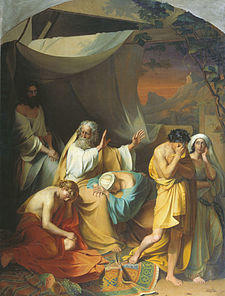 As the reading continues, eight generations after Shem, Terah had three sons: Abram (who would become Abraham), Nahor, and Haran.[59] Haran had a son Lot and two daughters Milcah and Iscah, and then died in Ur during the lifetime of his father Terah.[60]