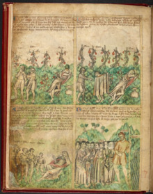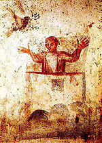 As early as the Classical era, commentators on Genesis 9:20–21 have excused Noah's excessive drinking because he was considered to be the first wine drinker; the first person to discover the effects of wine.[9] John Chrysostom, Archbishop of Constantinople, and a Church Father, wrote in the 4th century that Noah's behavior is defensible: as the first human to taste wine, he would not know its effects: "Through ignorance and inexperience of the proper amount to drink, fell into a drunken stupor".[10] Philo, a Hellenistic Jewish philosopher, also excused Noah by noting that one can drink in two different manners: (1) to drink wine in excess, a peculiar sin to the vicious evil man or (2) to partake of wine as the wise man, Noah being the latter.[11] In Jewish tradition and rabbinic literature on Noah, rabbis blame Satan for the intoxicating properties of the wine.[12][13]