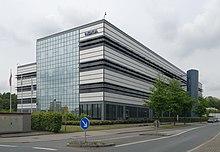 Nokia Corporation (natively Nokia Oyj, referred to as Nokia; Finnish: [ˈnokiɑ], UK: /ˈnɒkiə/, US: /ˈnoʊkiə/) is a Finnish multinational telecommunications, information technology, and consumer electronics company, founded in 1865. Nokia's headquarters are in Espoo, Finland, in the greater Helsinki metropolitan area.[4] In 2018, Nokia employed approximately 103,000 people across over 100 countries, did business in more than 130 countries, and reported annual revenues of around €23 billion.[5] Nokia is a public limited company listed on the Helsinki Stock Exchange and New York Stock Exchange.[6] It is the world's 415th-largest company measured by 2016 revenues according to the Fortune Global 500, having peaked at 85th place in 2009.[7] It is a component of the Euro Stoxx 50 stock market index.[8][9]