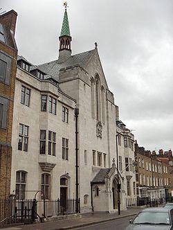The church is located at 4 Saint Katharine's Precinct, Regent's Park, London NW1 4HH (off Albany Street) (51°32′2″N 0°8′48″W / 51.53389°N 0.14667°W). The nearest London Underground stations are Camden Town or Great Portland Street. The building is the former Anglican chapel of St Katharine's Hospital, which retains its original dedication to Saint Katharine, and was built in 1826-8. The architect was Ambrose Poynter.[1] It has been Grade II* listed since 1954.