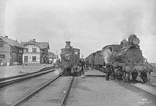 Hell Station had to be rebuilt, and the old station building was moved to Sunnan Station.[33] Controversies arose over the location of Skatval Station,[34] Levanger Station,[35] Verdal Station,[36] Sparbu Station, with the initial discarding of Mære Station,[37] and Steinkjer Station. The line through Steinkjer was controversial, as the proposal would split the town in two, and there was an intense debate as to which side of the river the station should be built on. A counter-proposal which saw the line run further up and cross through Steinkjersannan and Furuskogen—and thus avoid the town itself—was discarded because it would wreck the military camp at Steinkjersannan and would be located too far from the port.[38]