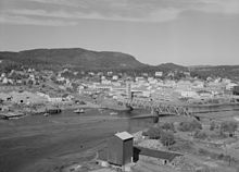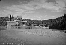 From 1905, the government started work on financing several large railway projects, including the Dovre Line, the Rauma Line, the Sørlandet Line and the Nordland Line. On 10 June 1908, Parliament unanimously passed these lines in the Railway Plan of 1908, which included the 79-kilometer (49 mi) long section from Sunnan via Snåsa to Grong, albeit without a branch to Namsos.[63] The county stated that they would not grant any district funding to the line unless a branch to Namsos was also passed. This was a high-stake game, as Parliament could as a counter-measure decide to not built the line to Grong.[64] In 1912, the Norwegian Directorate of Mining proposed a branch of the Nordland Line from Grong to Tunnsjøen, where pyrite mining was planned.[65] The decision to build the Namsos Line was taken by Parliament in 1913.[66] Work started in 1916[67] and it was opened in 1934.[68] The main train service became a daily round trip from Trondheim to Namsos, using four and half hours to Grong.[69]