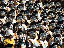 The Spartan Legion Band was founded in 1975. The band performs at campus events and during some Norfolk State football and basketball games. They were featured performers in the Honda Battle of the Bands in 2007 and 2008. In 2018 they were featured in the official music video for the song Heavy Metal by French house act Justice.[18] In 2020 The Band Was Voted HBCU Sports Band Of The Year. Selected performances include, most recently the Barack Obama Presidential campaign rally in Norfolk, VA. The “Legion’s” history includes: the Philadelphia Parade commemorating the 200th anniversary of the Constitution (1987), the Mardi Gras in the Rex Parade in New Orleans, LA (2003); the MLK “Drum Major for Justice” Parade, St. Petersburg, FL (2006); the Honda Battle of the Bands Invitational Showcase (2007 and 2008); the Norfolk Grand Illumination Parade (2006 and 2007); collegiate venues in the MEAC, CIAA and Colonial Conferences, Rutgers University, University of Kentucky and Villanova University. The “Legion” is also the inaugural host of the HBCU (Historically Black Colleges and Universities) Band Battlefest, which annually spotlights 10 HBCU Marching Bands and command performances in San Diego, CA; Bermuda and New York, NY.